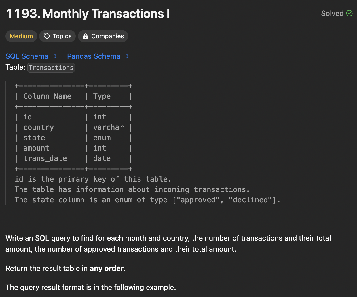 LeetCode/1193-monthly-transactions-i at bb87723a531cbc50dbd8244086ee145d8eff8bf4 · cupucharm/LeetCode